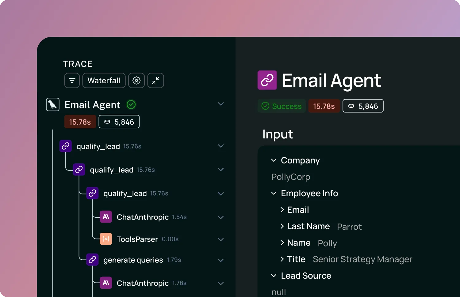 Agents create dense outputs that make debugging hard. Tracing gives you clear visibility into each step, so you can quickly identify issues and confidently explain what your agent is actually doing.