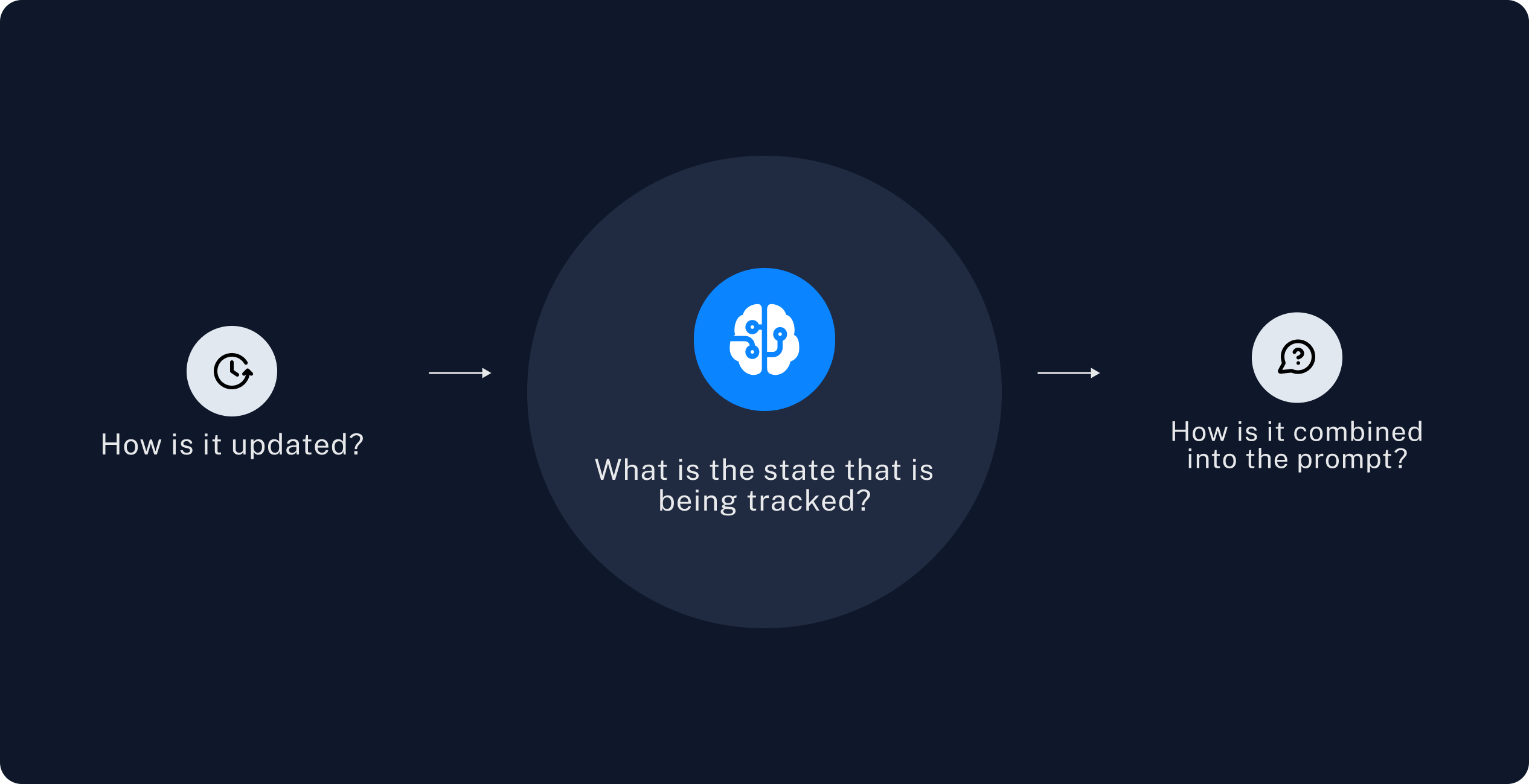 1. What is the state is that tracked?2. How is the state updated?3. How is the state used?