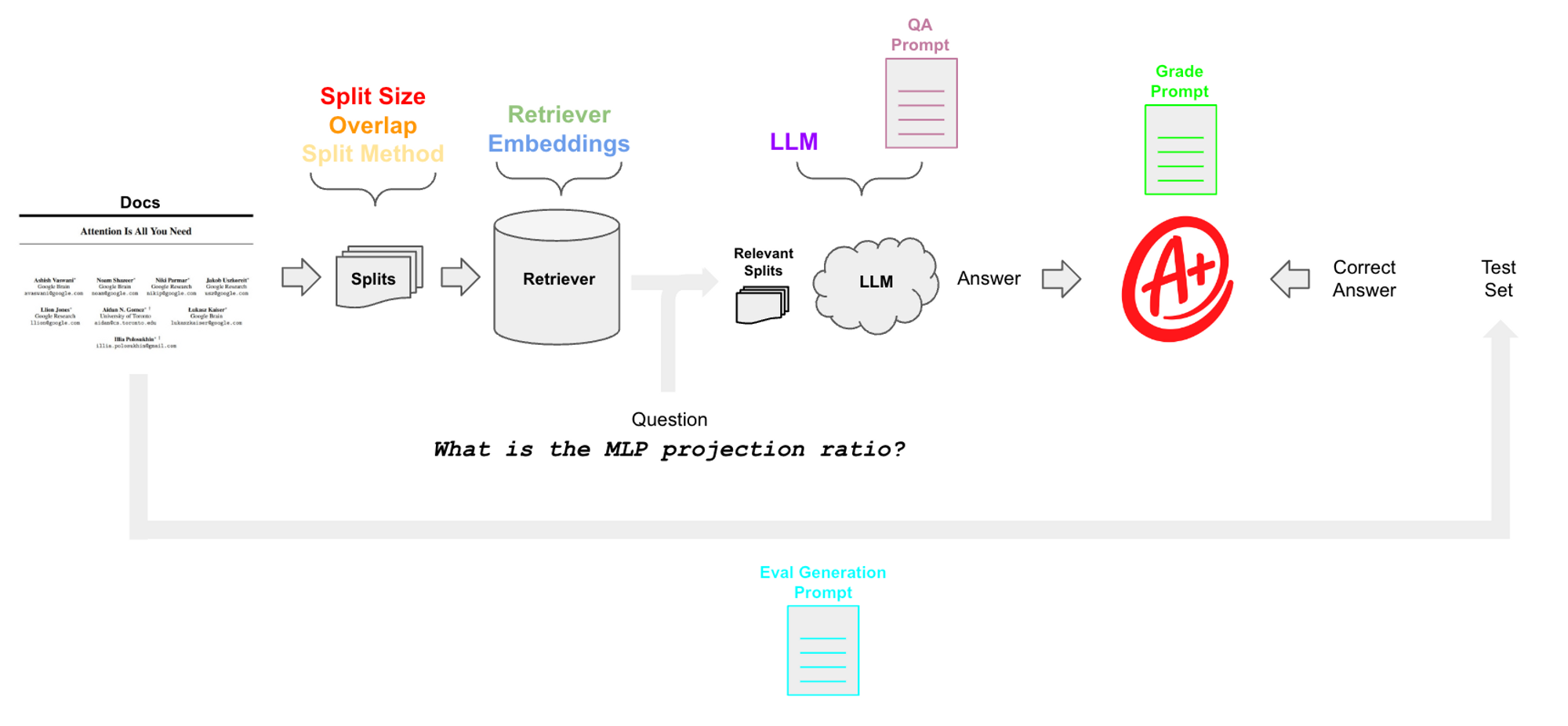 The quality of QA systems can vary considerably; we have seen cases of hallucination and poor answer quality due specific parameter settings. But, it is not always obvious to (1) evaluate the answer quality and (2) use this evaluation to guide improved QA chain settings (e.g., chunk size, retrieved docs count) or components (e.g., model or retriever choice).