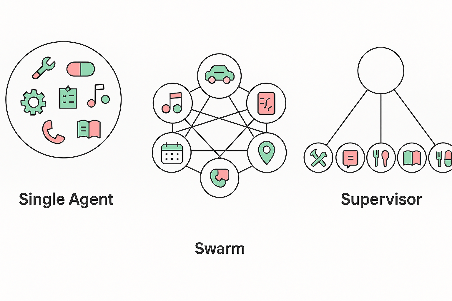 In this blog, we explore a few common multi-agent architectures. We discuss both the motivations and constraints of different architectures. We benchmark their performance on a variant of the Tau-bench dataset. Finally, we discuss improvements we made to our “supervisor” implementation that yielded a nearly 50% increase in performance on this benchmark.