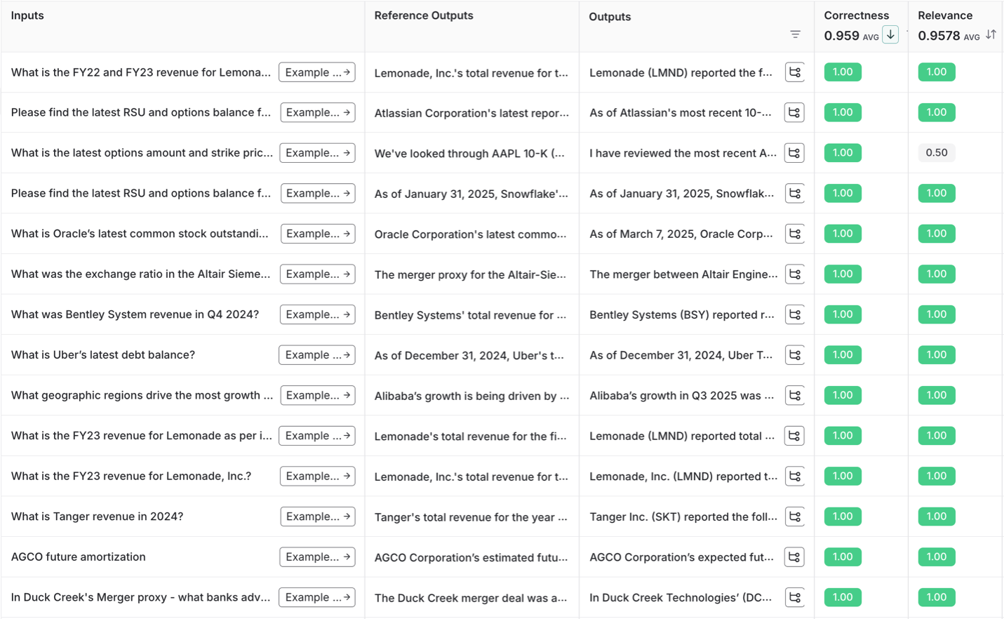 LangSmith also plays a critical role in maintaining quality over time. Captide sets up evaluations that test both common and edge-case user requests recurrently, scoring the agent’s responses to catch issues before they surface. It’s a continuous feedback loop that ensures every deployment is smarter, faster, and more resilient than the last.
