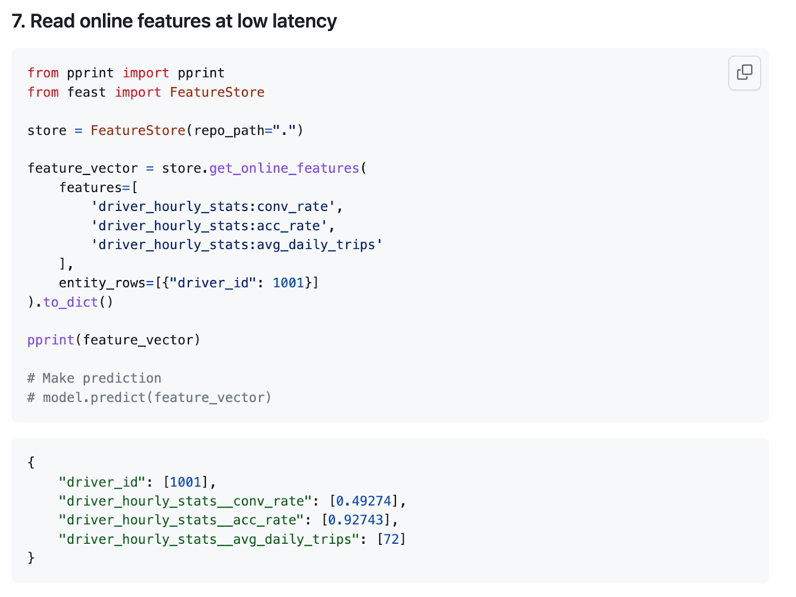 See the example notebook for this here. We do this for a variety of feature stores: feast, Tecton, FeatureForm. Here’s an example of the code for doing it with Tecton - as you can see - it’s really quite simple!
