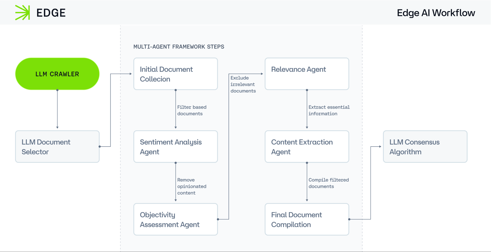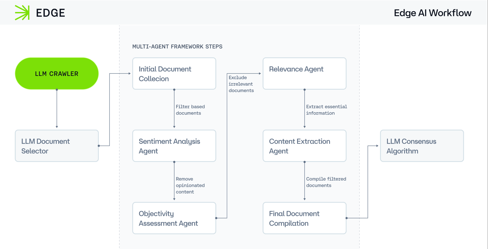 Today, we’re excited to announce the alpha release of Edge AI Oracle. Built using the latest advancements in LLMs, Edge AI Oracle orchestrates a multi-agent council, built on LangChain and LangGraph, that maximizes objectivity, transparency, and efficiency in query resolution. A core initial application of this is for prediction markets.