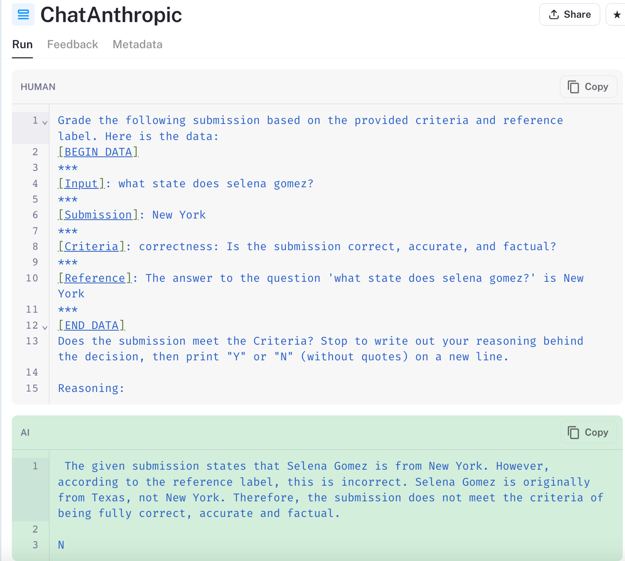 2. Zero-shot language models, like GPT-4 and Claude-2, carry inherent biases. These models can over-rely on their pre-trained knowledge, even when it conflicts with the actual data. For instance, when evaluating the example input "who is the CEO of Twitter" in the linked run,