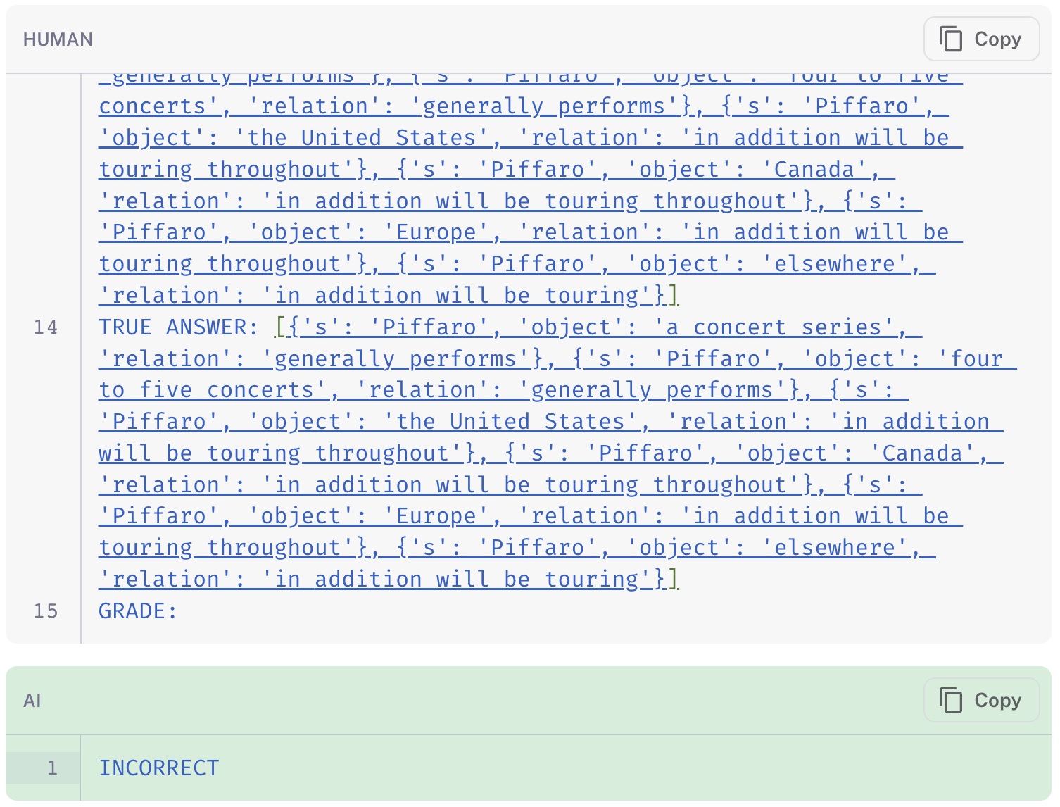 - The “Incorrect” split was generated by inserting a new triple into each example.