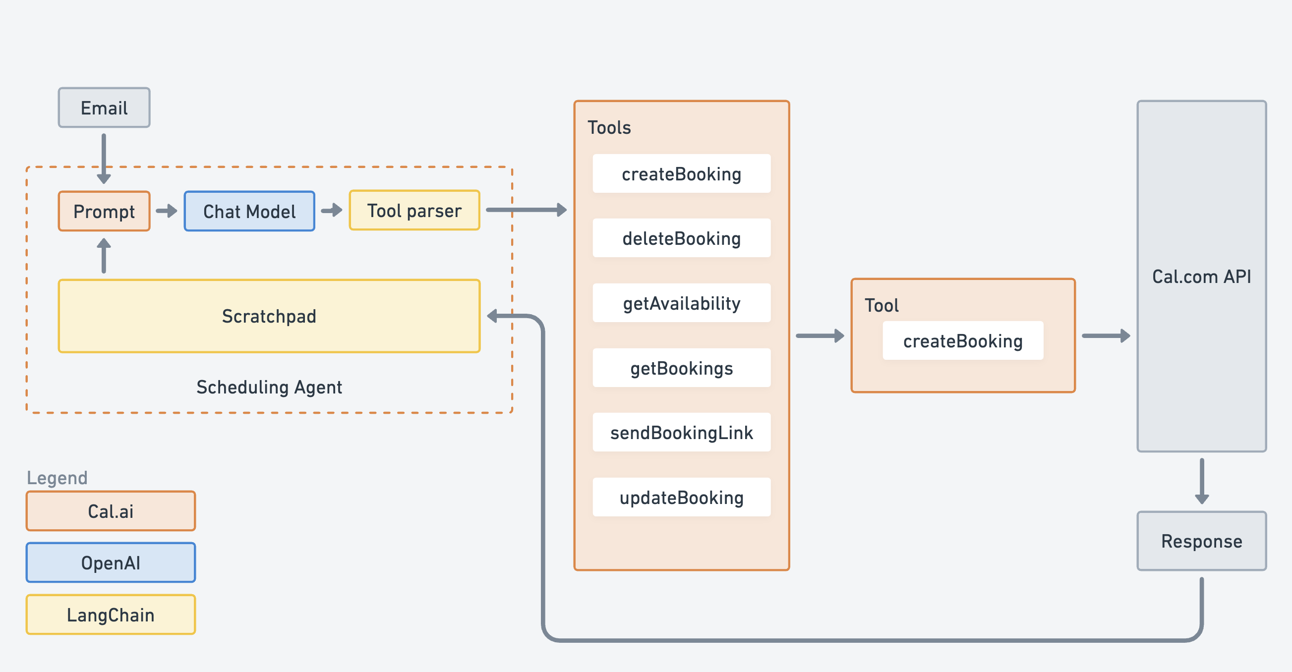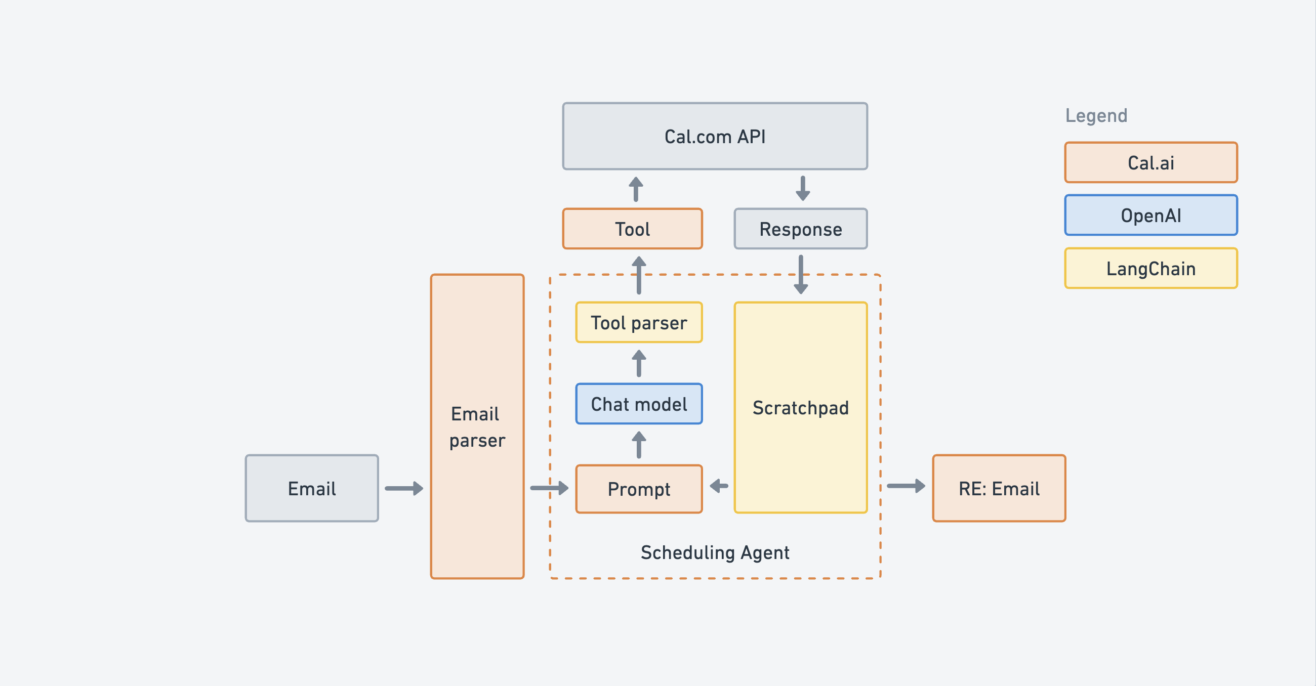 The purpose of this guide is to explain the underlying tech and logic used to deploy a scheduling agent, Cal.ai, in production using LangChain.
