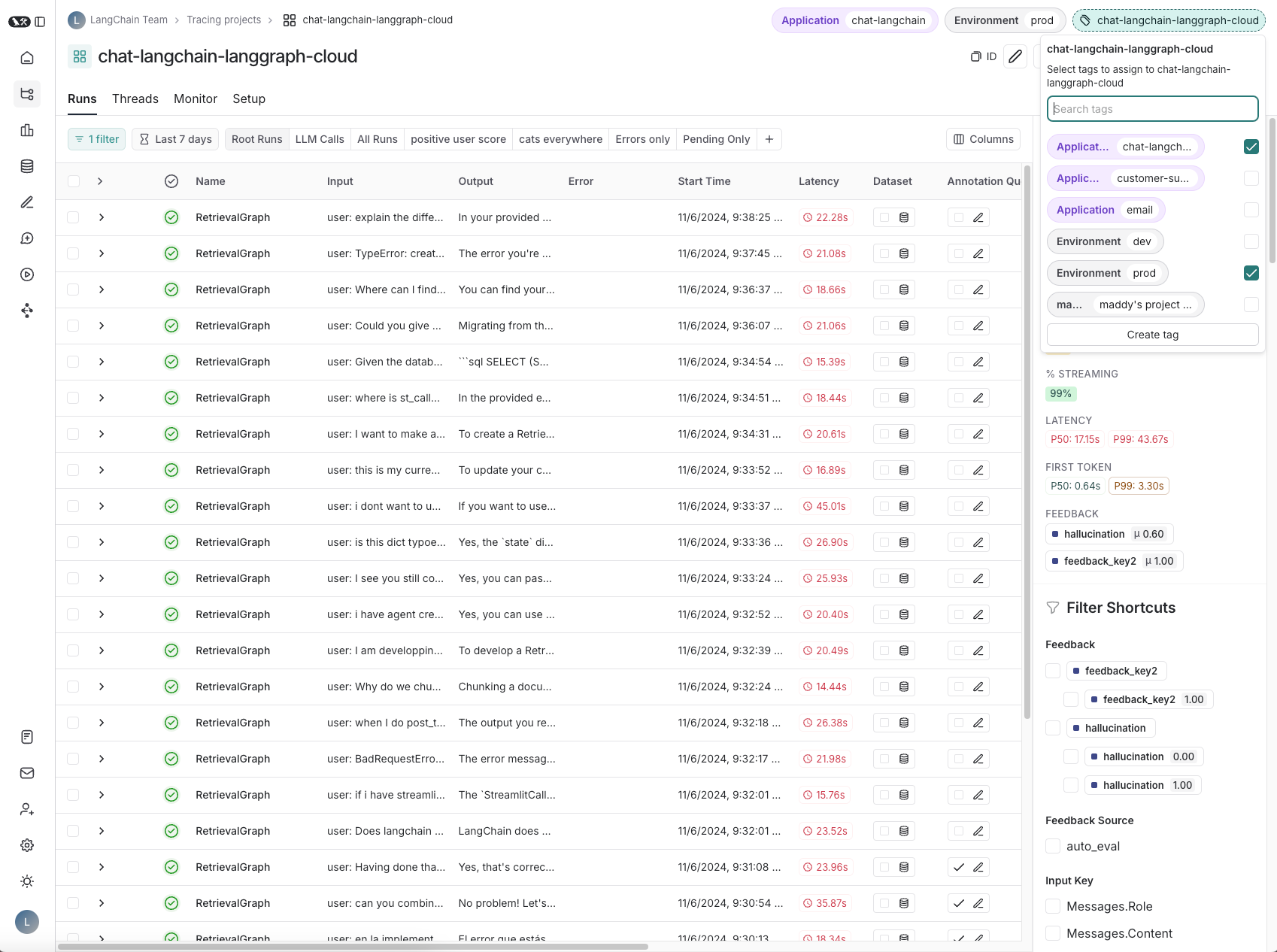 We’ve now made resource tags even more intuitive and flexible. In a typical application, you might have multiple tracing projects for different LLM pipelines, various datasets, numerous prompts, and numerous annotation queues. We aim to simplify how these resources can be logically grouped and accessed.