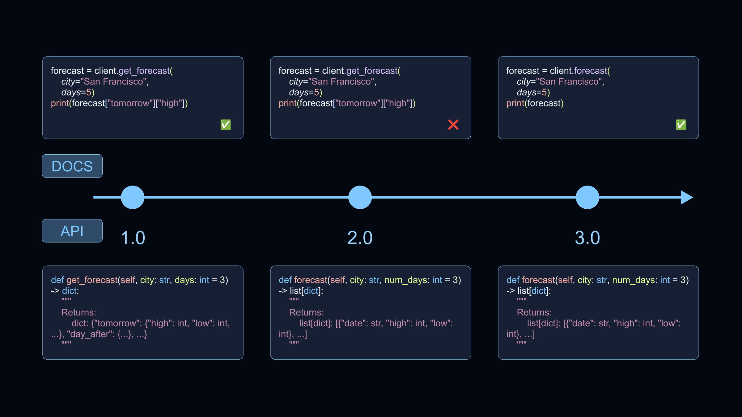 Making code samples testable solves this. That means running them in CI, asserting they execute correctly, and failing the build when they break. But setting up code samples to be testable is not trivial and requires some upfront investment. This setup cost can feel so daunting that the project never happens.