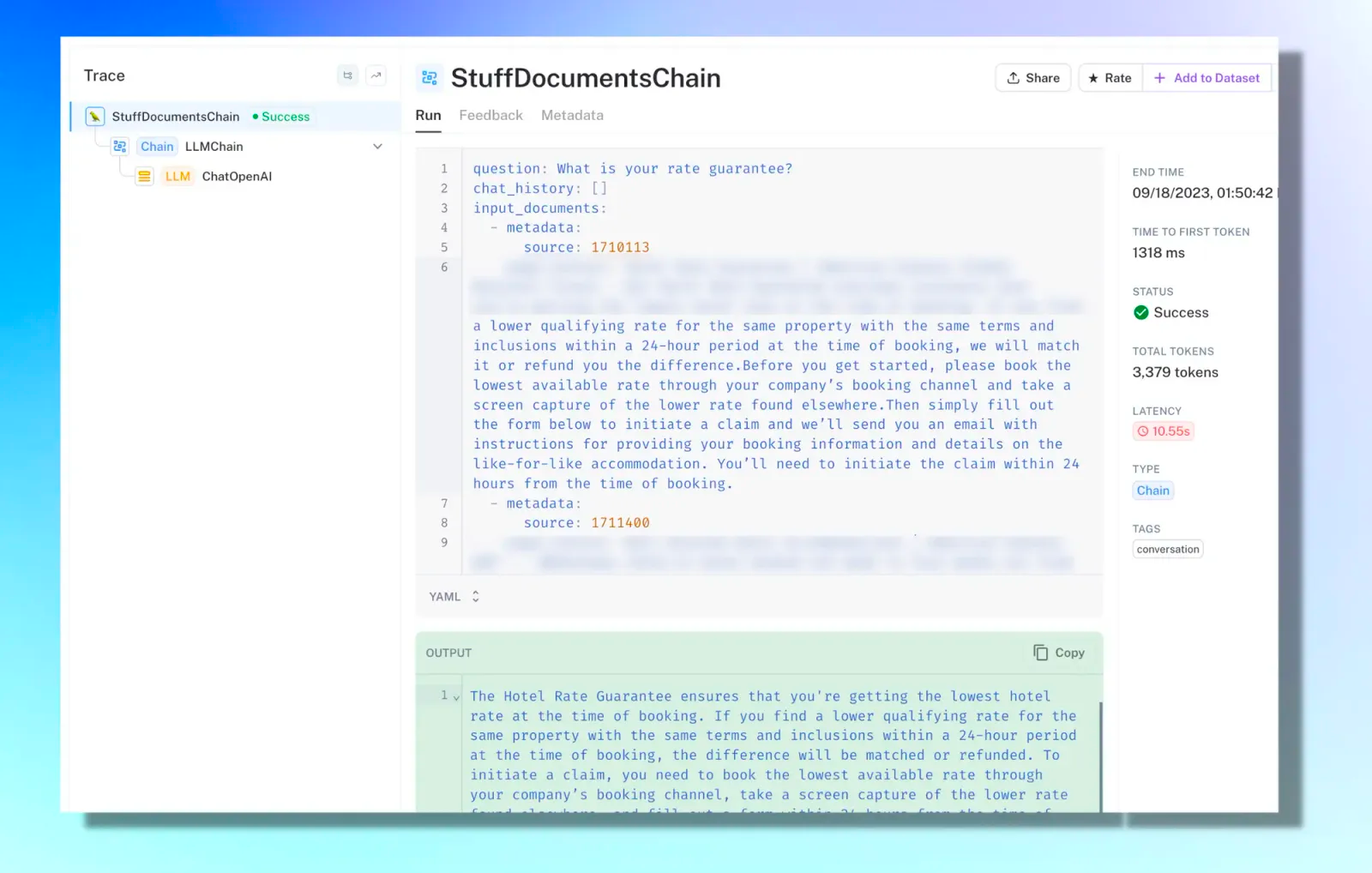 Truth is, until we powered up LangSmith, we truly had no way of postmorteming responses from OpenAI or testing how prompt changes, or even upgrading to a new model like GPT-4, would affect the answers.