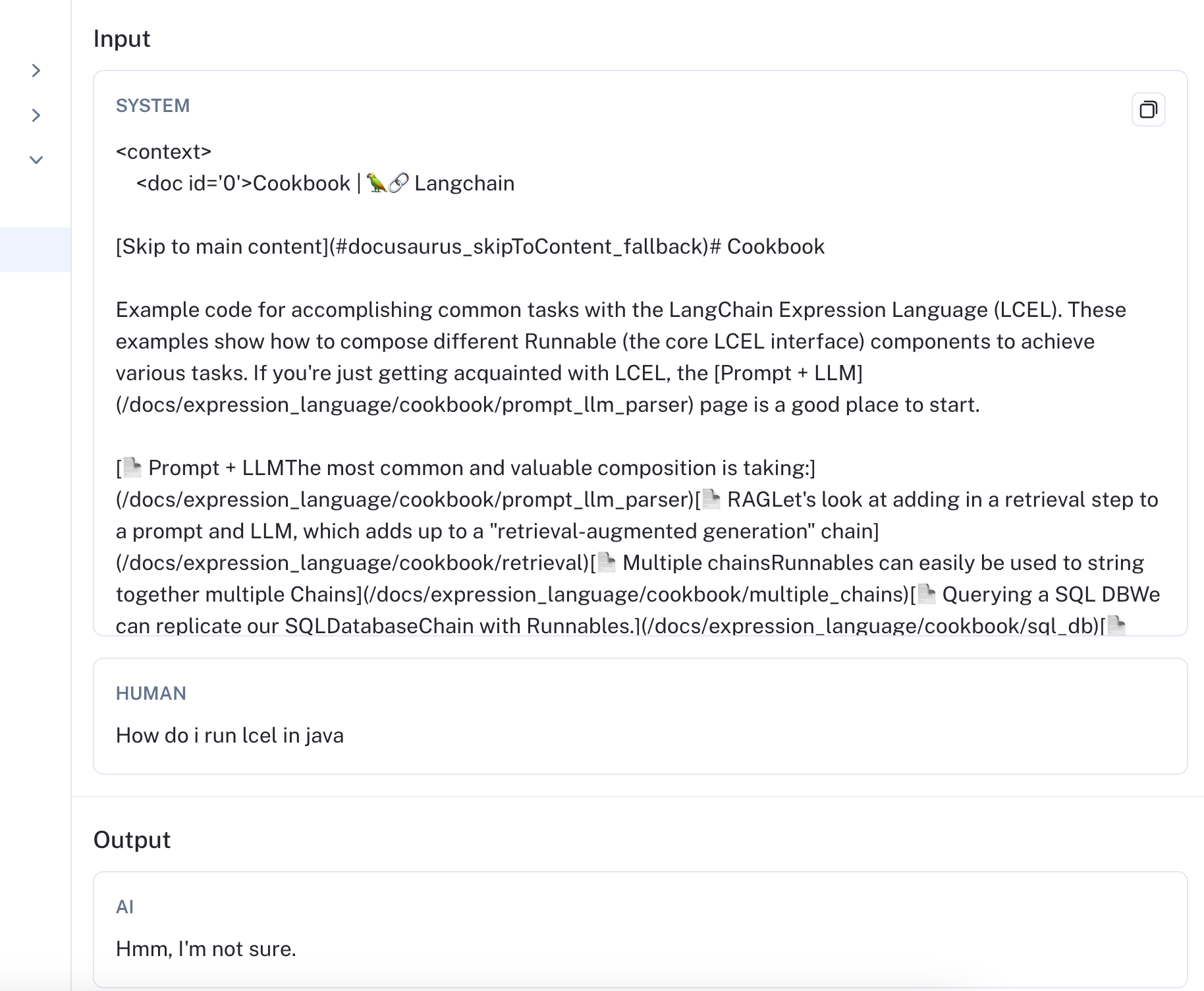 To check this hypothesis, you can open the LLM run in the playground. By swapping documents 1 and 5, we can see that the LLM responds with the correct answer. Based on this check, we could update the order we present the documents and re-run evaluation!