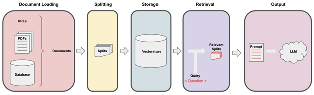 The process begins with using an ETL tool set like unstructured, which identifies the document type, extracts content as text, cleans the text, and returns one or more text elements. A second library, in this case langchain, will then “chunk” the text elements into one or more documents that are then stored, usually in a vectorstore such as Chroma. Finally, an LLM can be used to query the vectorstore to answer questions or summarize the content of the document.