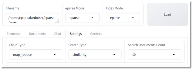 Adding options for chain type, search type, and k-documents settings to my Gradio app, I am now able to test each of these strategies in different configurations against different LLMs: