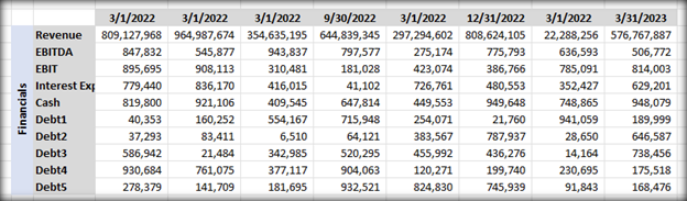 To better understand this problem, let’s consider an example. In the eparse code repository there is a unit test data file called eparse_unit_test_data.xlsx which contains the following sub-tables, each with different types of financial data: